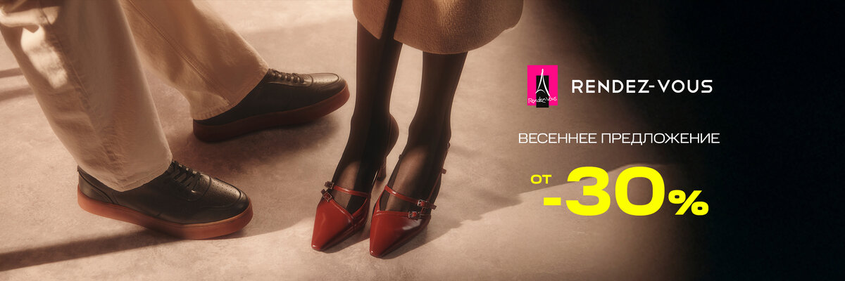 Сейчас в Rendez-Vous действует скидка от 30% на все. Кроме того, при покупке трех товаров из категории «Обувь», «Сумки», «Одежда» вы получите дополнительную скидку 10%.